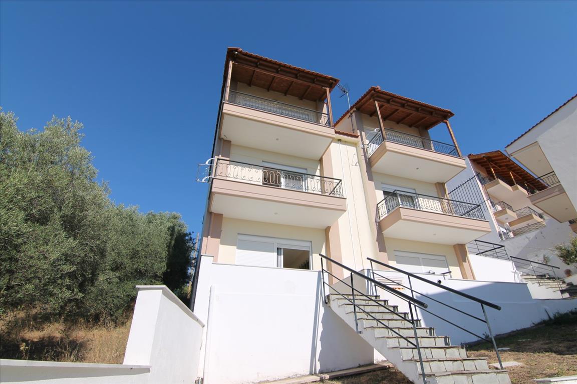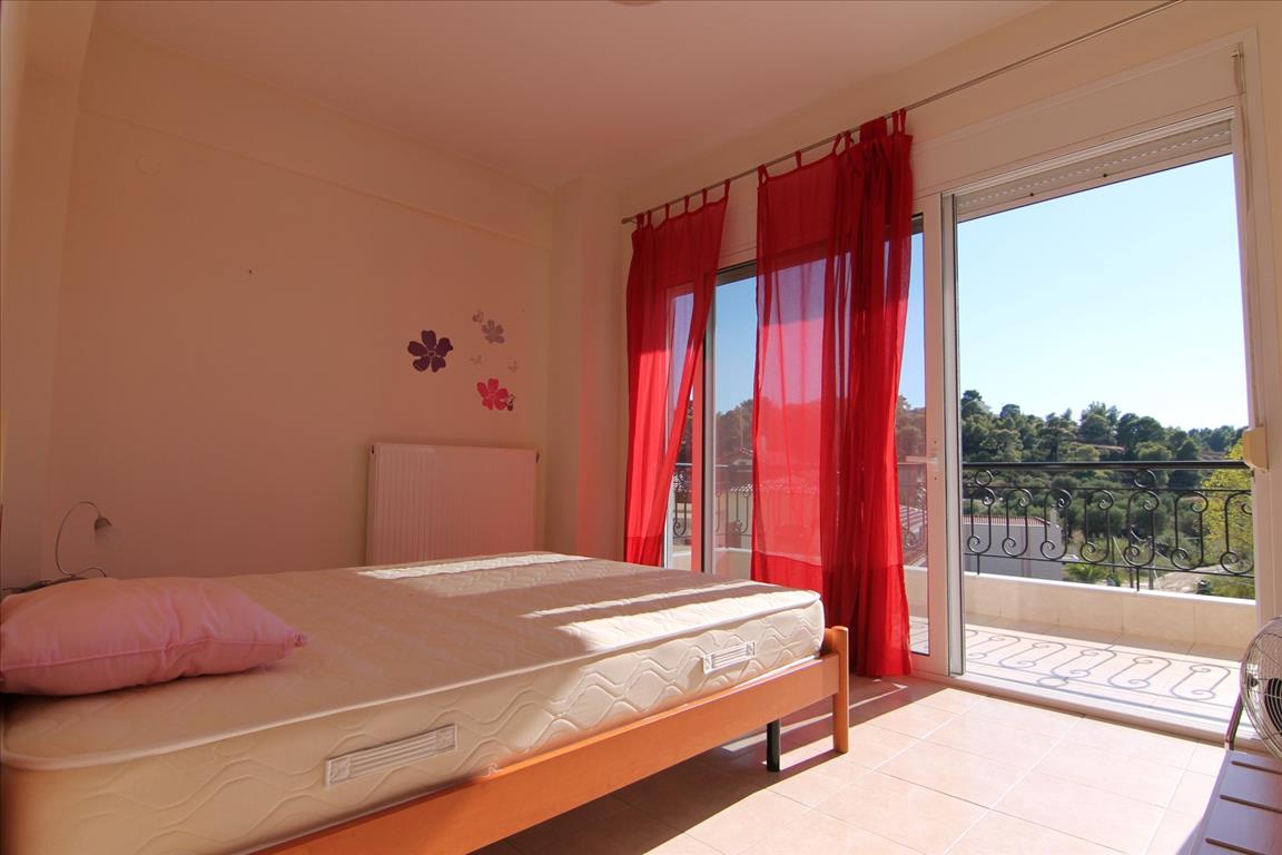 For sale maisonette of 109 sq.meters in Sithonia, Chalkidiki . The maisonette has 3 levels. Semi-basement consists of one bedroom, one shower WC. Ground floor consists of living room with kitchen. 1st floor consists of 2 bedrooms, one shower WC. A magnificent view of the sea, the forest opens up from the windows. There are: a fireplace, air conditioning, heating. The owners will be leaving the furniture with the sale. Extras included with the property: parking space.