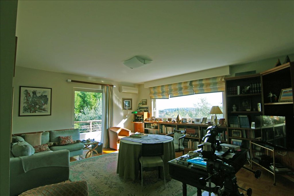 A view of the city, the sea, the mountain, the forest opens up from the windows. There are: a fireplace, air conditioning, awnings, heating. The owners will be leaving the furniture with the sale. Building has an elevator. There is an alarm system installed. Extras included with the property: parking space, garden.