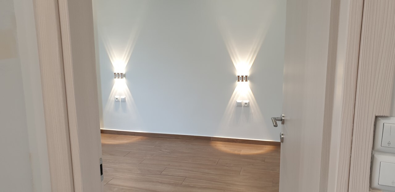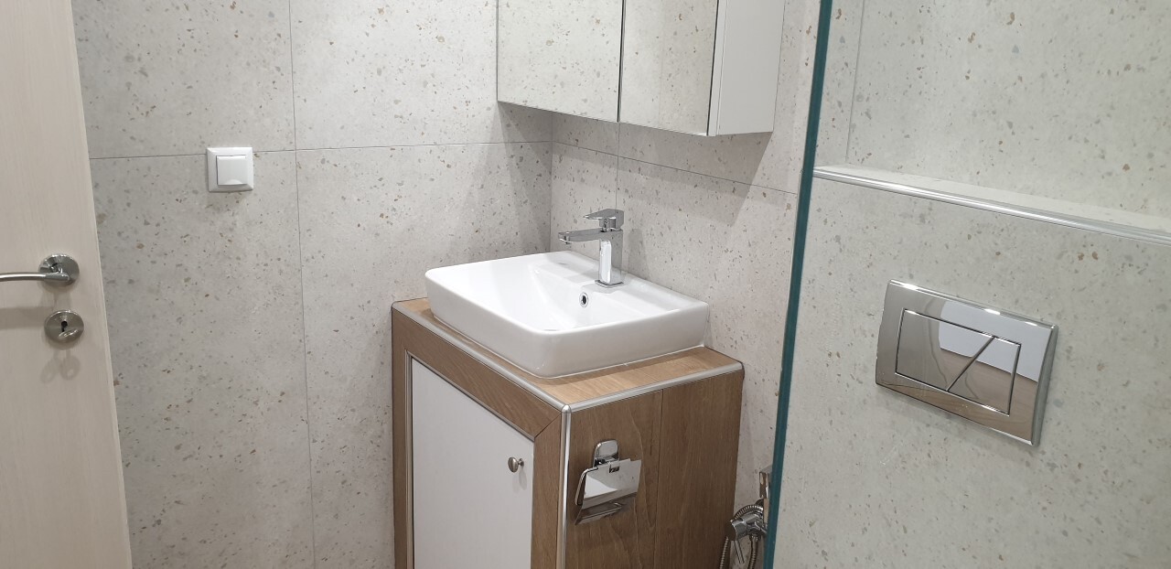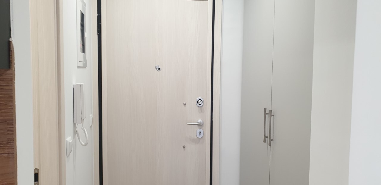Flat has front layout. There are: air conditioning, heating. Building has an elevator.