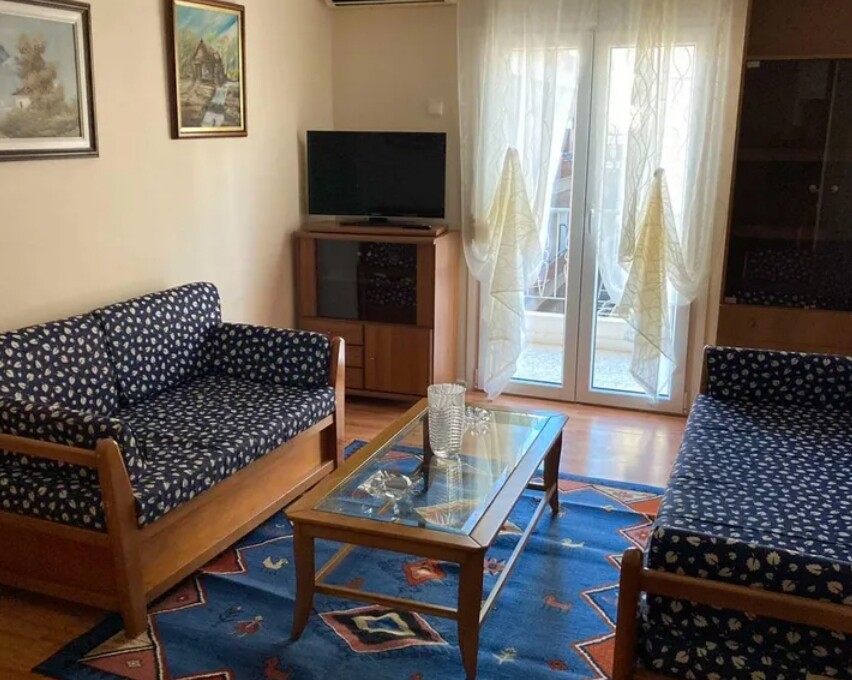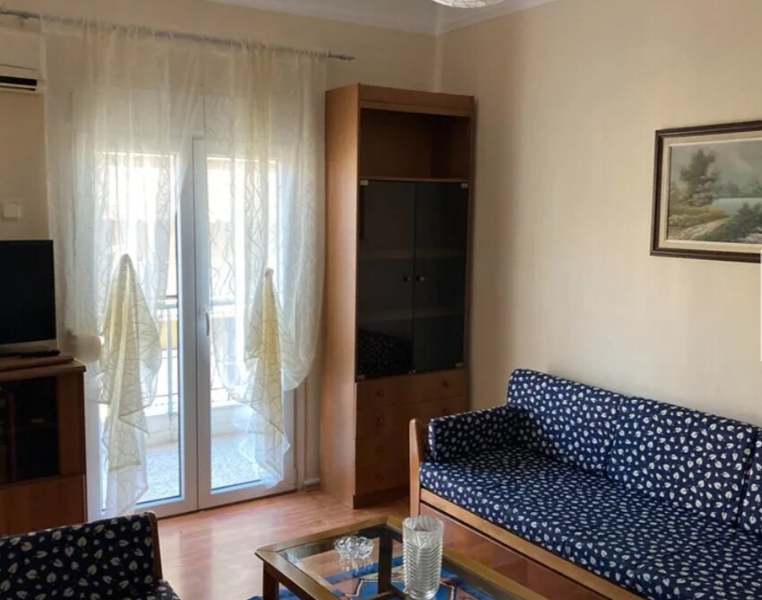For rent apartment of 50 sq.meters in Thessaloniki. The apartment is situated on the 4th floor. It consists of one bedroom, living room with kitchen, one shower WC.